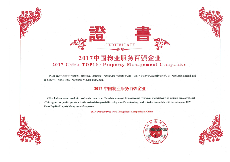 興業物聯榮獲 “2017中國物業服務百強企業”稱號
