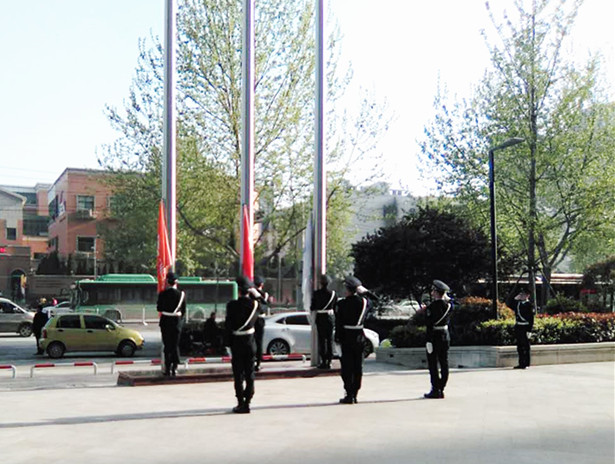 7點40整,神圣莊嚴的時刻來到了,在雄壯激昂的國歌聲中,英姿颯爽的國旗班戰士奮力揮臂將國旗拋向空中。高高的旗桿上,燦爛的朝霞中,鮮艷的五星紅旗在同志們的注目下冉冉升起。這一刻,每一名職工都心潮澎湃,臉上有一股服務者的自豪,思想得到進一步升華……。